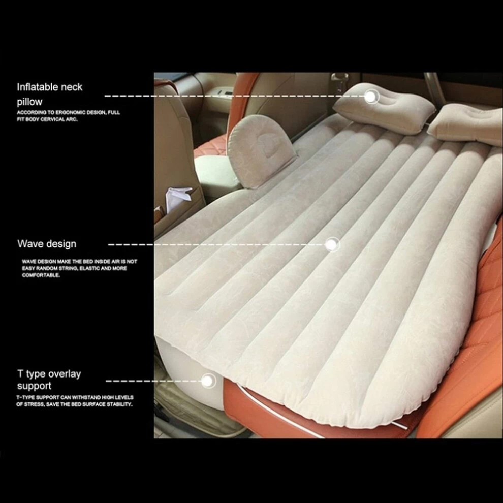 تتميز بتصميم خفيف الوزن وقابل للطي، وتُنفخ خلال دقيقتين فقط باستخدام مضخة الهواء المرفقة التي تعمل عبر ولاعة السيارة. كما أن سطحها المصنوع من النسيج المُبطن عالي الكثافة يقلل من الضوضاء ويوفر راحة فائقة أثناء النوم.