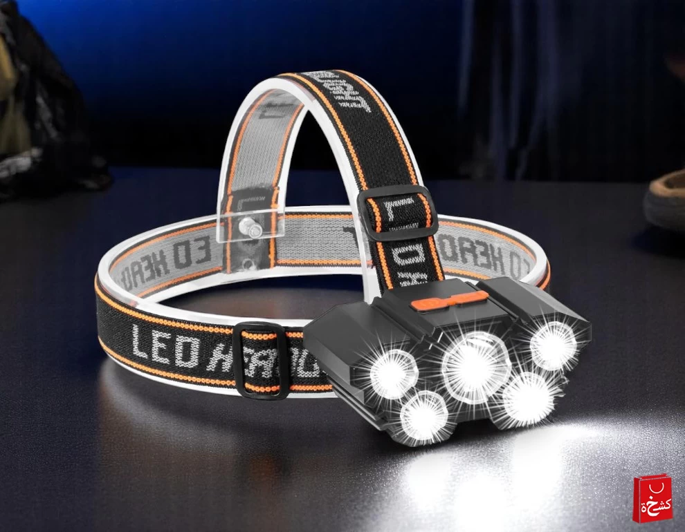 كشاف راس مع 5 مصابيح ليد مقاوم للماء قابل للشحن مناسب لرحلات التخييم