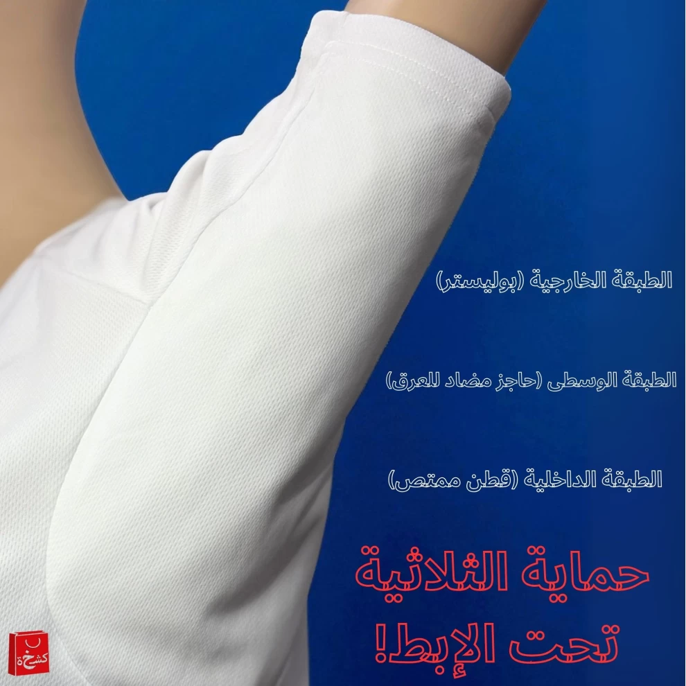 🚫 الطبقة الوسطى (حاجز مضاد للعرق): نسيج متطور يمنع مرور العرق نهائيًا – خط دفاعك الأقوى ضد البقع المحرجة.