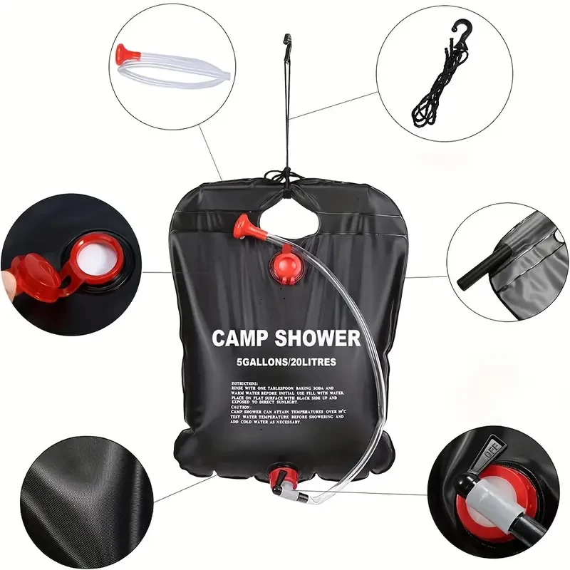 ابقَ نظيفًا ومنتعشًا أثناء مغامراتك في الهواء الطلق مع حقيبة دش التخييم المحمولة والعاملة بالطاقة الشمسية بسعة 20 لتر!