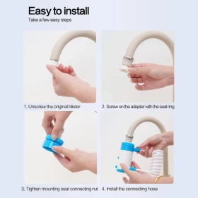 • 🛠️ تركيب سهل بدون أدوات – يناسب معظم الصنابير المستديرة