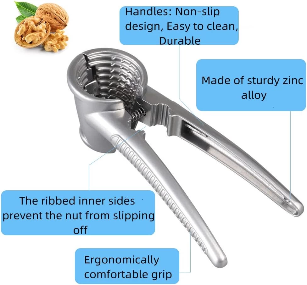 كسارة الجوز البسيطة، بغض النظر عن حجم كسارة الجوز. تسحق الجوز العنيد بسهولة في ثوانٍ. سهلة التنظيف، فقط اغسلها وجففها تحت الماء الجاري.