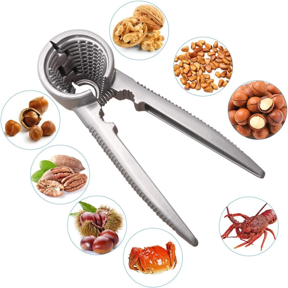تأتي ملقطات الجوز الخاصة بنا بفتحتين مختلفتين للجوز والبندق واللوز وجوز المكاديميا وجوز البرازيل. ولكن كن حذرًا: لا يمكن استخدامها للجوز الأسود الصلب.