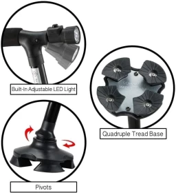 عصا مساعدة على المشي مصممة للأمان والراحة، مزودة بضوء LED للرؤية الليلية، وتطوى بسهولة عند عدم الاستخدام. مثالية لكبار السن، أو أثناء فترة التعافي، أو لمن يحتاج