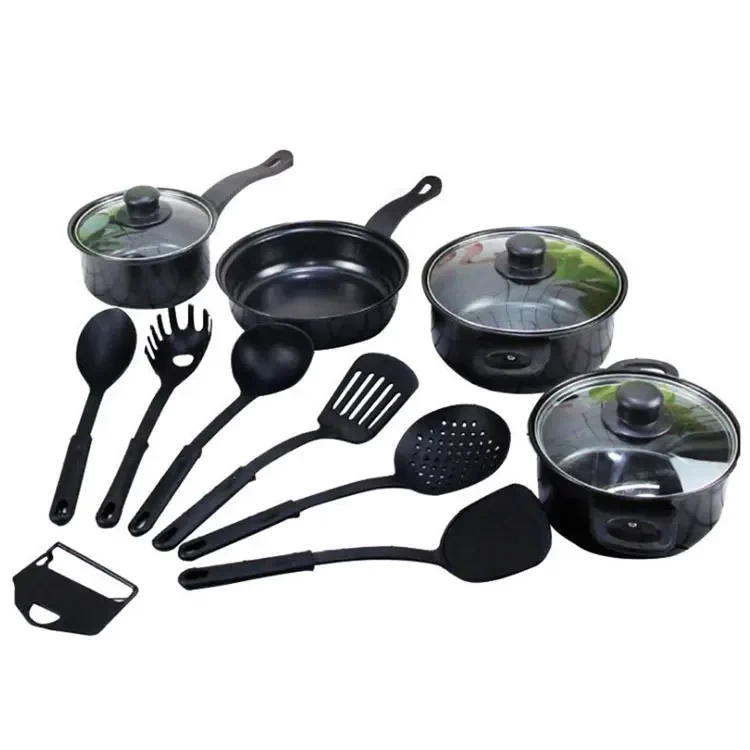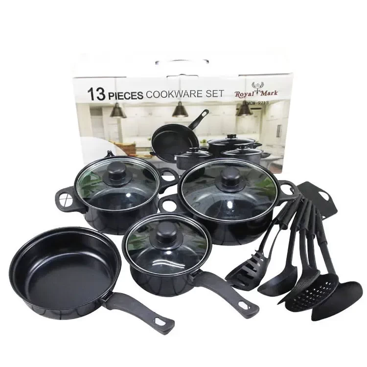 طقم قدور طهي 13 قطعة | أواني حديدية غير لاصقة مع أغطية زجاجية | جودة عالية وأناقة للمطبخ
