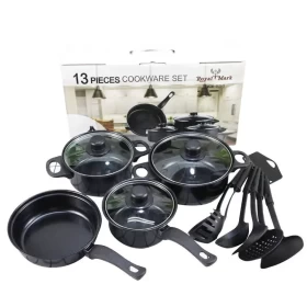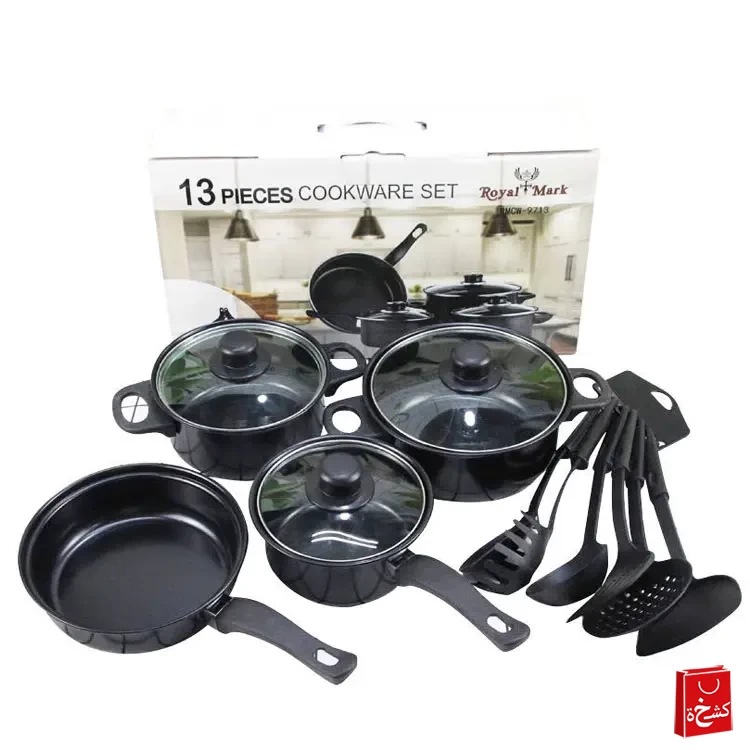 • عدد القطع: 13 قطعة (قدور، مقالي، وأغطية)