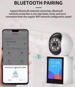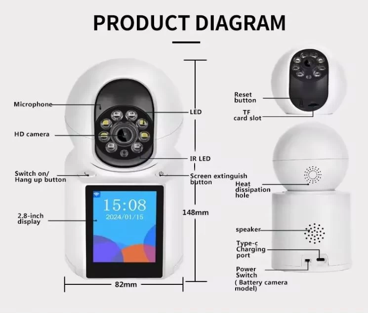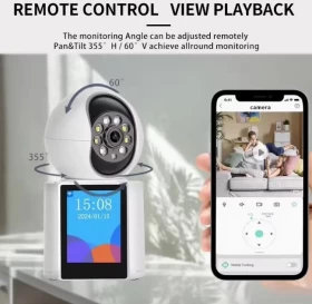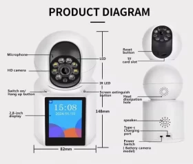 احصل على حماية ذكية واتصال مرئي مباشر مع كاميرا كاميرا مراقبة منزلية متطورة بدقة 3 ميجابكسل، مزودة بذكاء اصطناعي وشاشة مدمجة لعرض الزوار وإجراء مكالمات بالصوت والصورة.