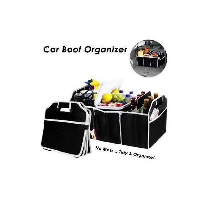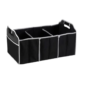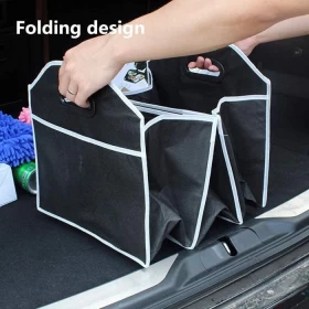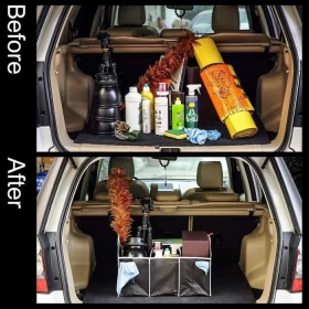 احصلي على سيارة منظمة وخالية من الفوضى مع منظم شنطة السيارة (3 أقسام). مصمم للاستفادة القصوى من مساحة الشنطة، مثالي للبقالة، الأدوات، مستلزمات السفر والرياضة. متين، قابل للطي، وسهل الاستخدام – الحل الأمثل للتنظيم داخل السيارة.