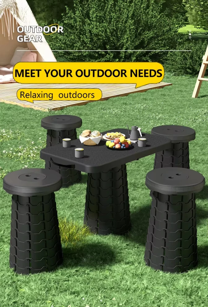 🪑 كرسي قابل للطي مع طاولة – أسود | قابل لتعديل الارتفاع، محمول وموفر للمساحة