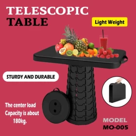 كرسي قابل للطي مزود بطاولة مدمجة، عملي جداً وسهل الاستخدام، يتميز بارتفاع قابل للتعديل وحجم صغير عند الطي، مما يجعله مثالياً للرحلات، التخييم، الصيد، الاستخدام المنزلي، والأنشطة الخارجية.