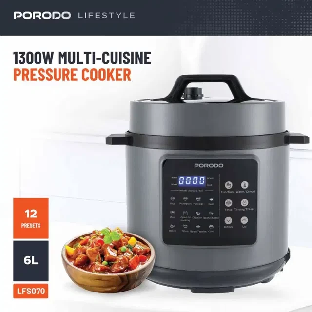قدر ضغط كهربائي متعدد الأطباق من Porodo Lifestyle بقدرة 1300 واط 6 ليتر