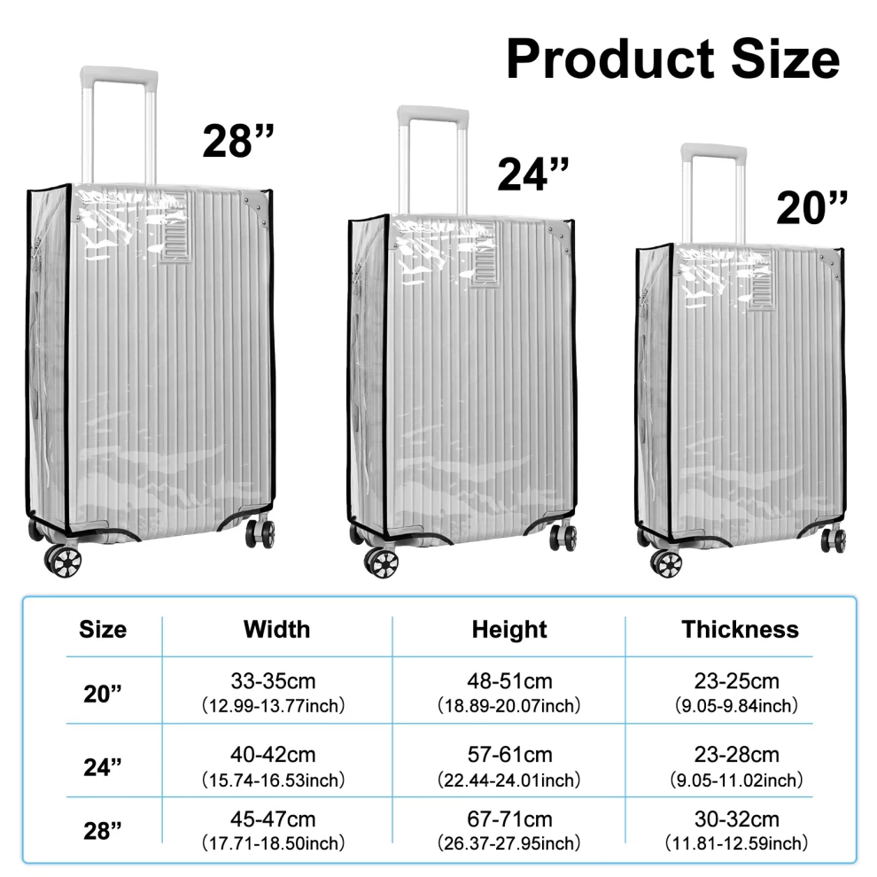 احمِ حقيبتك واحتفظ بها نظيفة مع غطاء الأمتعة الشفاف. مصمم لحقيبة 20 بوصة، يحميها من الغبار، الخدوش، والتآكل مع الحفاظ على رؤية واضحة لتصميم الحقيبة. مثالي للمسافرين الذين يبحثون عن حماية عملية ومتينة وأنيقة.