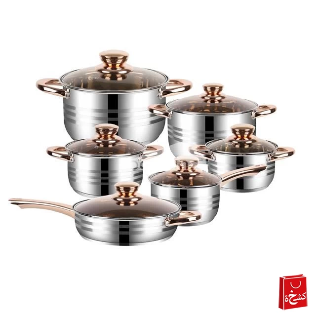 طقم قدور كسرولة ستانلس ستيل – 12 قطعة مطبخ متكامل