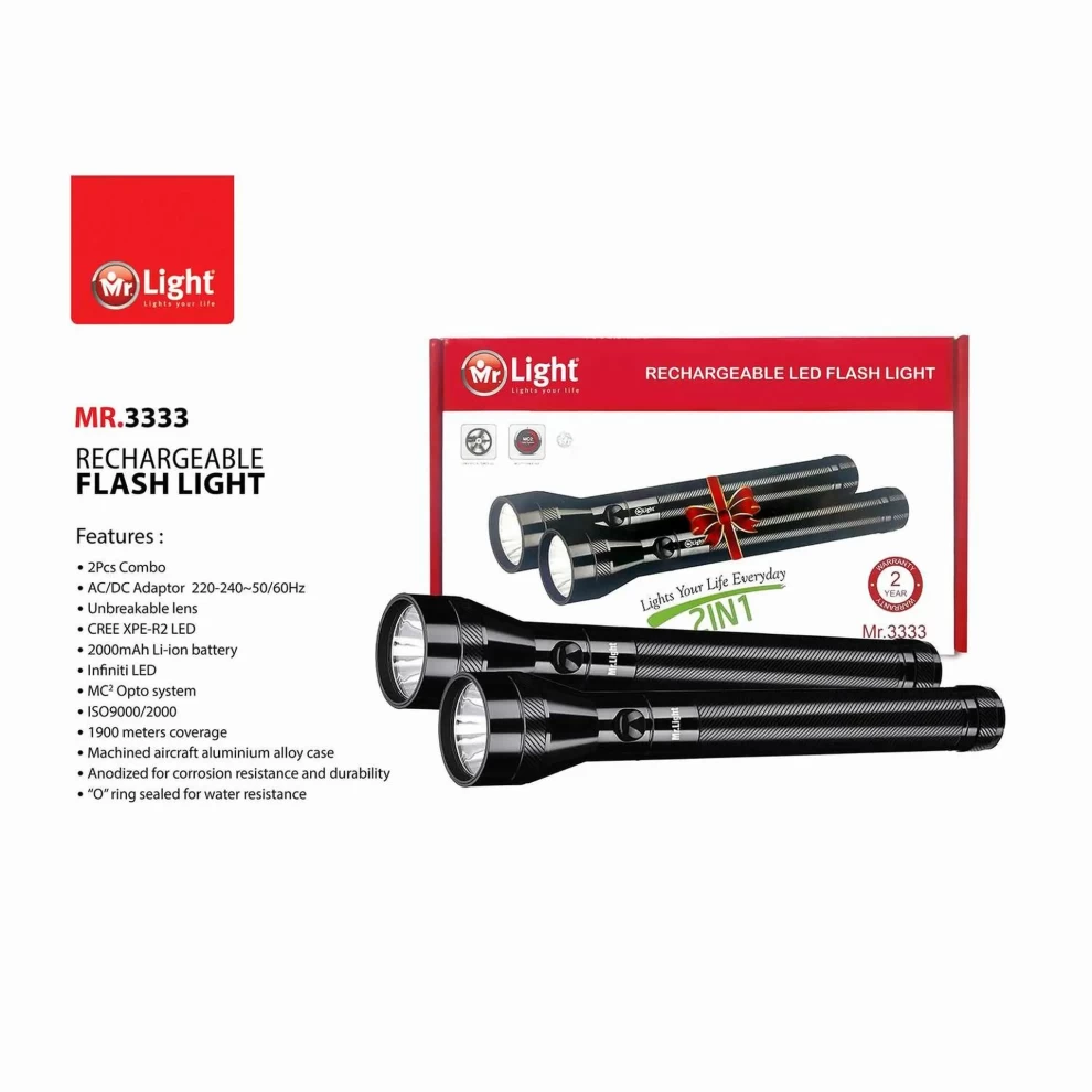 كشاف Mr.Light MR.3333 LED قابل للشحن – طقم 2 قطعة