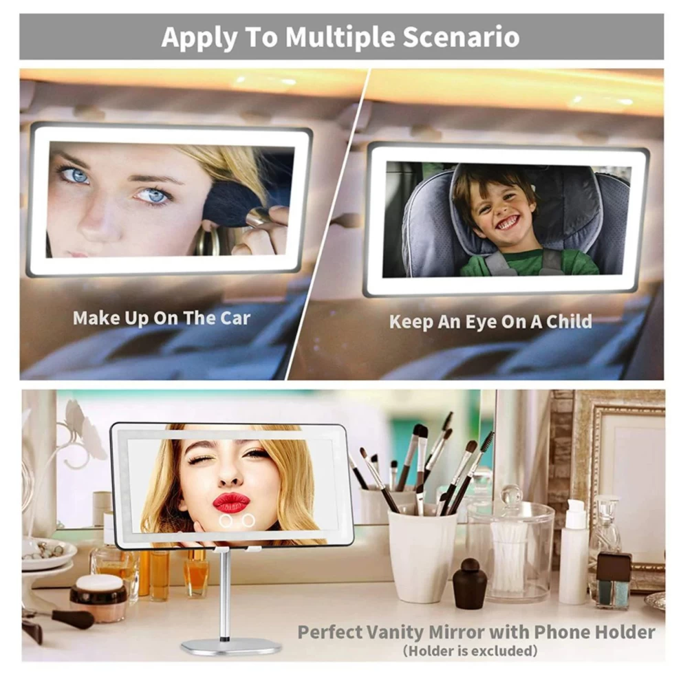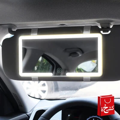مرآة سيارة بإضاءة LED للواقي الشمسي – مرآة مكياج قابلة للشحن باللمس