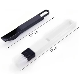 1. Use the serrated brush to sweep dirt from narrow grooves and hard-to-reach corners