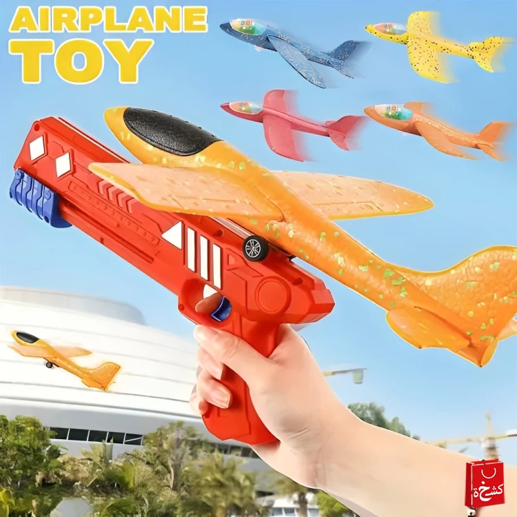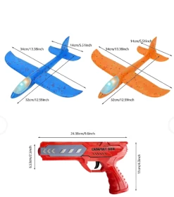 LED Light Airplane Toy with 2 Flight Modes Launcher | Outdoor Throwing Foam Shooting Game for Kids