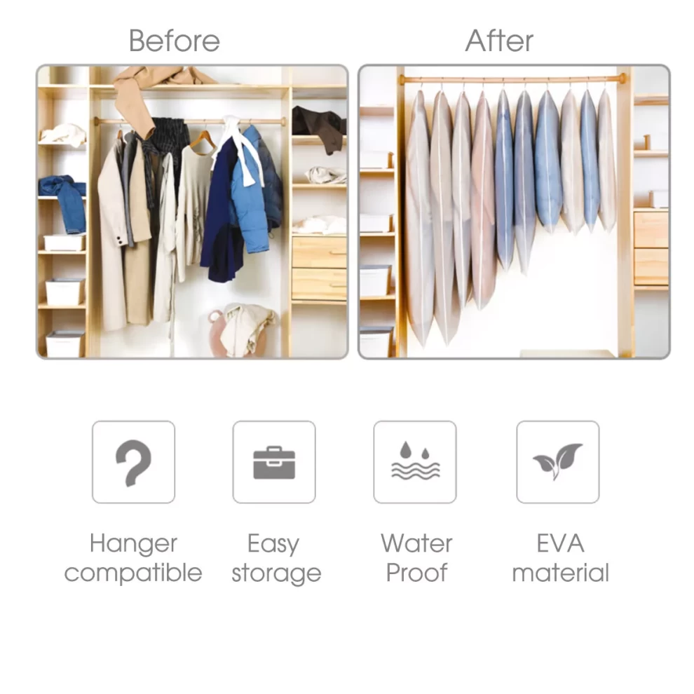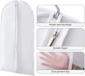• PROTECTS YOUR CLOTHES: Excellent closet garment protector bags for preventing dusts and damage to precious garments stored in the closet, garage or attic. Also useful for travelling to and from dry cleaners, laundry service, or tailors.