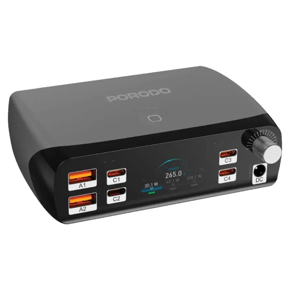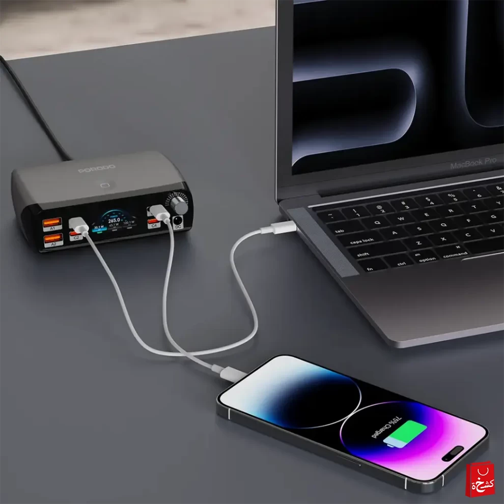 Keep your devices neatly charged and organized with the Porodo PowerGate Smart Charging Station. Designed with multiple high-speed outputs and smart power management, it can charge phones, tablets, earbuds, smartwatches, and more — all at the same time. Ideal for home, office, bedside, workstations, and travel use, this station eliminates clutter and ensures safe, fast charging for every device.