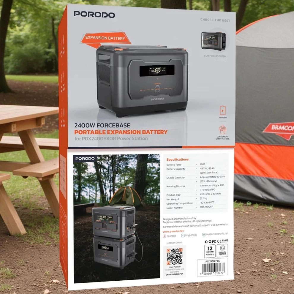 Stay powered anywhere with the Porodo ForceBase 2400W Portable Expansion Battery. Designed for outdoor adventures, camping, travel, RV, home backup, and emergency situations, this power station delivers massive energy capacity and reliable high-power output to run phones, laptops, appliances, lights, tools, and more.