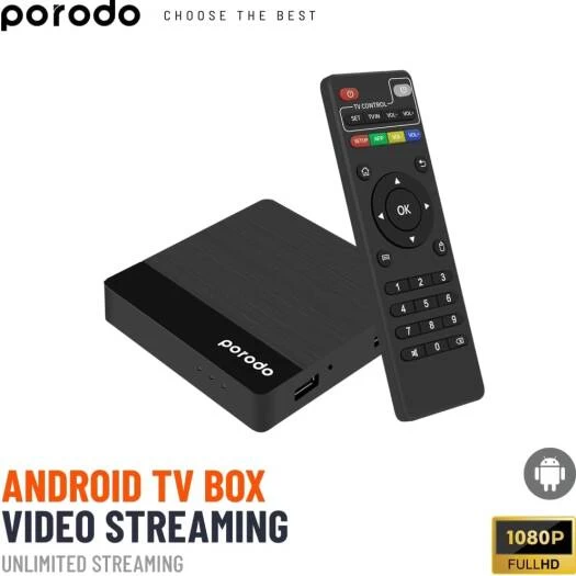 Enjoy unlimited streaming on your TV with the Porodo Android TV Box. Designed for smooth performance and easy navigation, it allows you to watch movies, TV shows, sports, YouTube, games, and more directly on your big screen. Just plug it into your TV and enjoy a full smart TV experience.