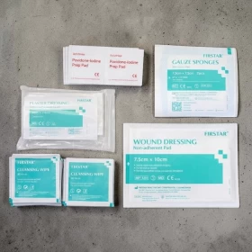 1️⃣ Clean the wound using the medical cleaning wipes or iodine sterilization pads.