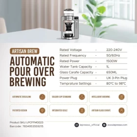 Enjoy barista-style coffee at home with the LePresso Automatic Pour Over Brewing Machine. This smart device automates the traditional pour-over method, delivering consistent extraction, rich aroma, and perfect taste every time. Ideal for coffee lovers, home brewers, offices, and specialty coffee enthusiasts.