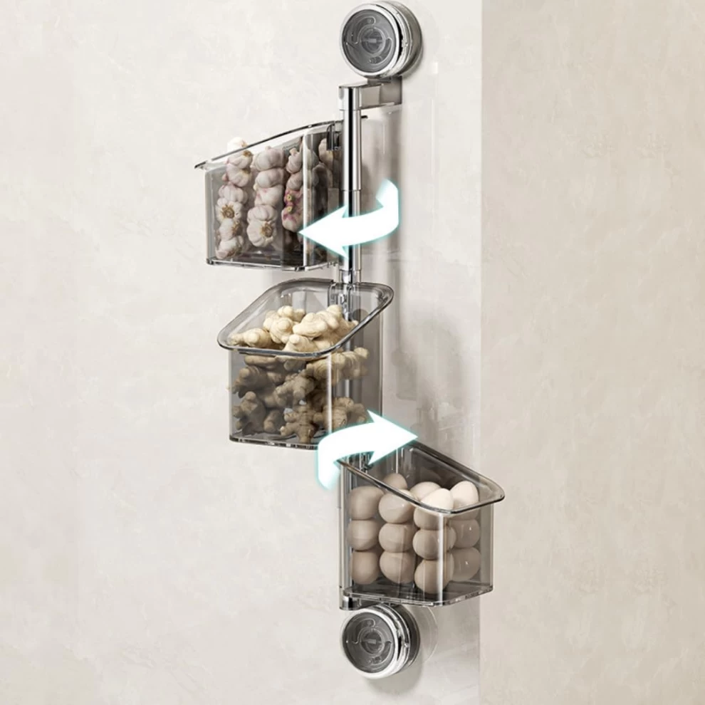 The Homero Wall-Mounted Rotating Organizer is the perfect solution for organizing your bathroom or kitchen without damaging walls. Featuring a strong suction cup system and durable PET & ABS construction, this 3-layer rotating shelf provides easy access and efficient storage for daily essentials.